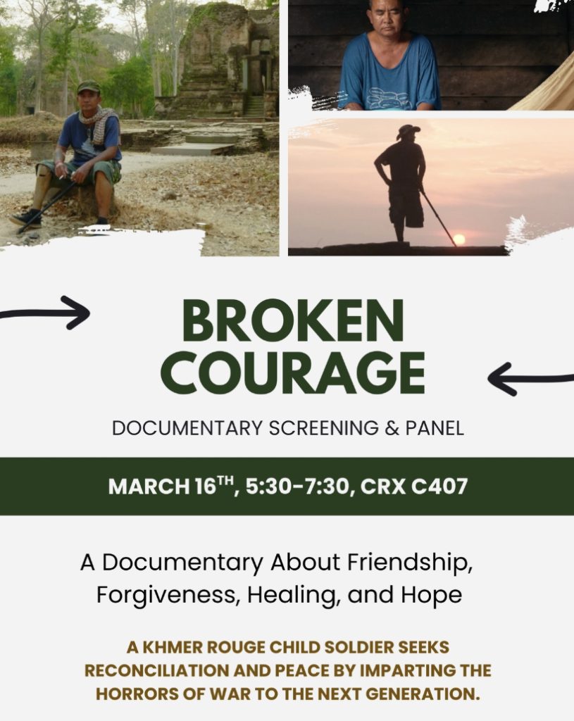 On March 16, the AED is organizing a screening of Broken Courage, a powerful documentary about friendship, forgiveness, healing, and hope—followed by a panel discussion. The documentary’s director, David Peck, will be in attendance. Synopsis: Set against the backdrop of the beautiful country of Cambodia, Broken Courage is a documentary which follows Suon Rottana, a […]
