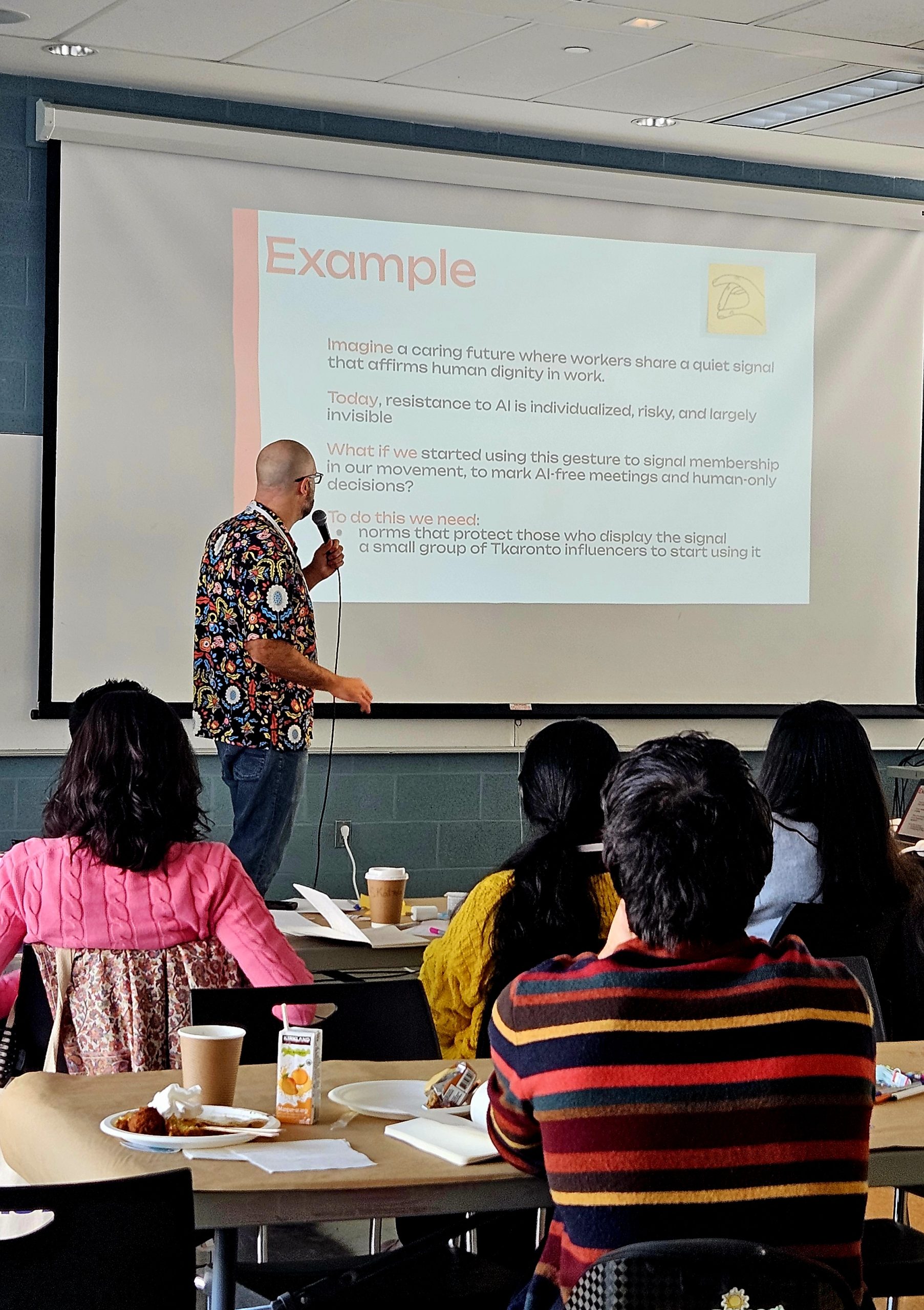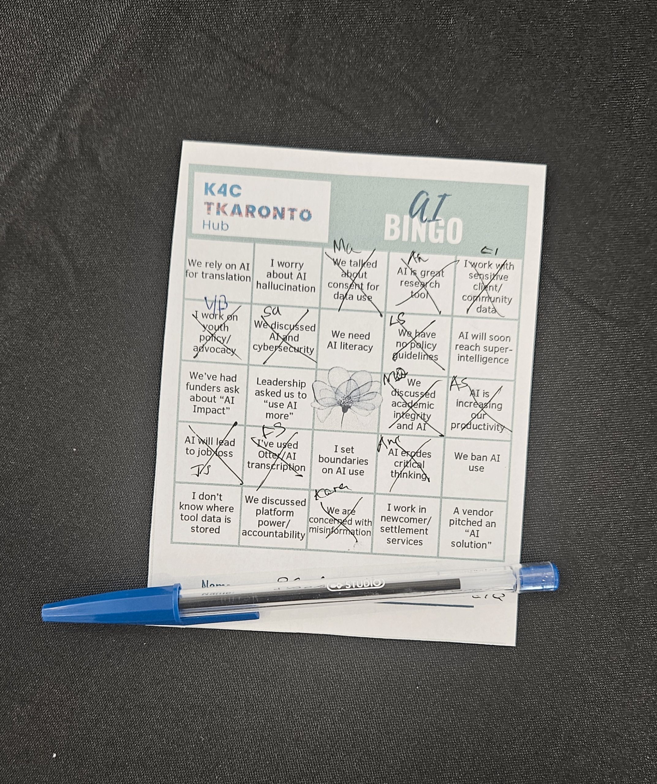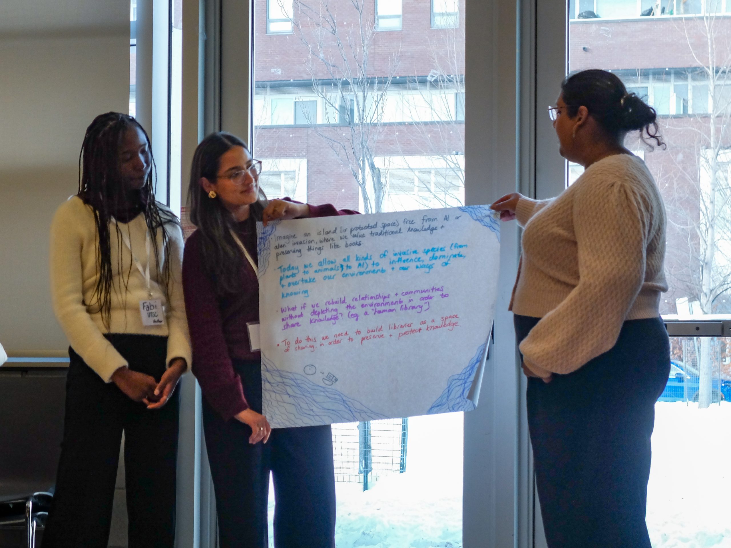 Designed for participants across the K4C Tkaronto Hub—including leaders within global and local development organizations, members of the Youth Policy-Makers Hub, early-career practitioners and students, and newcomer community researchers and organizers—the Innovation Lab aimed to create an exploratory space for dialogue about AI around shared concerns, hesitations, and opportunities; to identify the aspects of our work we want to protect, preserve, and uplift; and to consider what we wish AI designers understood about our communities.